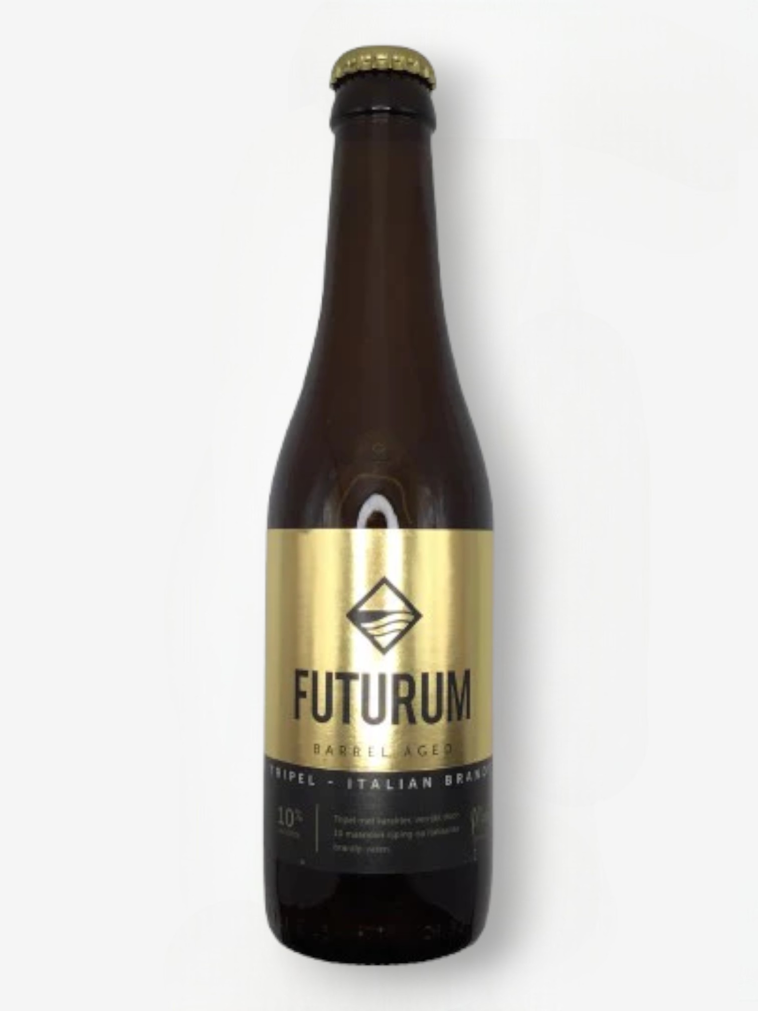 Futurum Italian Brandy BA 33CL is een barrel aged strong ale (Belgian strong ale-stijl) die heeft gerijpt op Italiaanse brandyvaten. Door deze rijping ontwikkelt het bier een diepe en gelaagde smaak met een duidelijke invloed van hout en gedistilleerde drank.