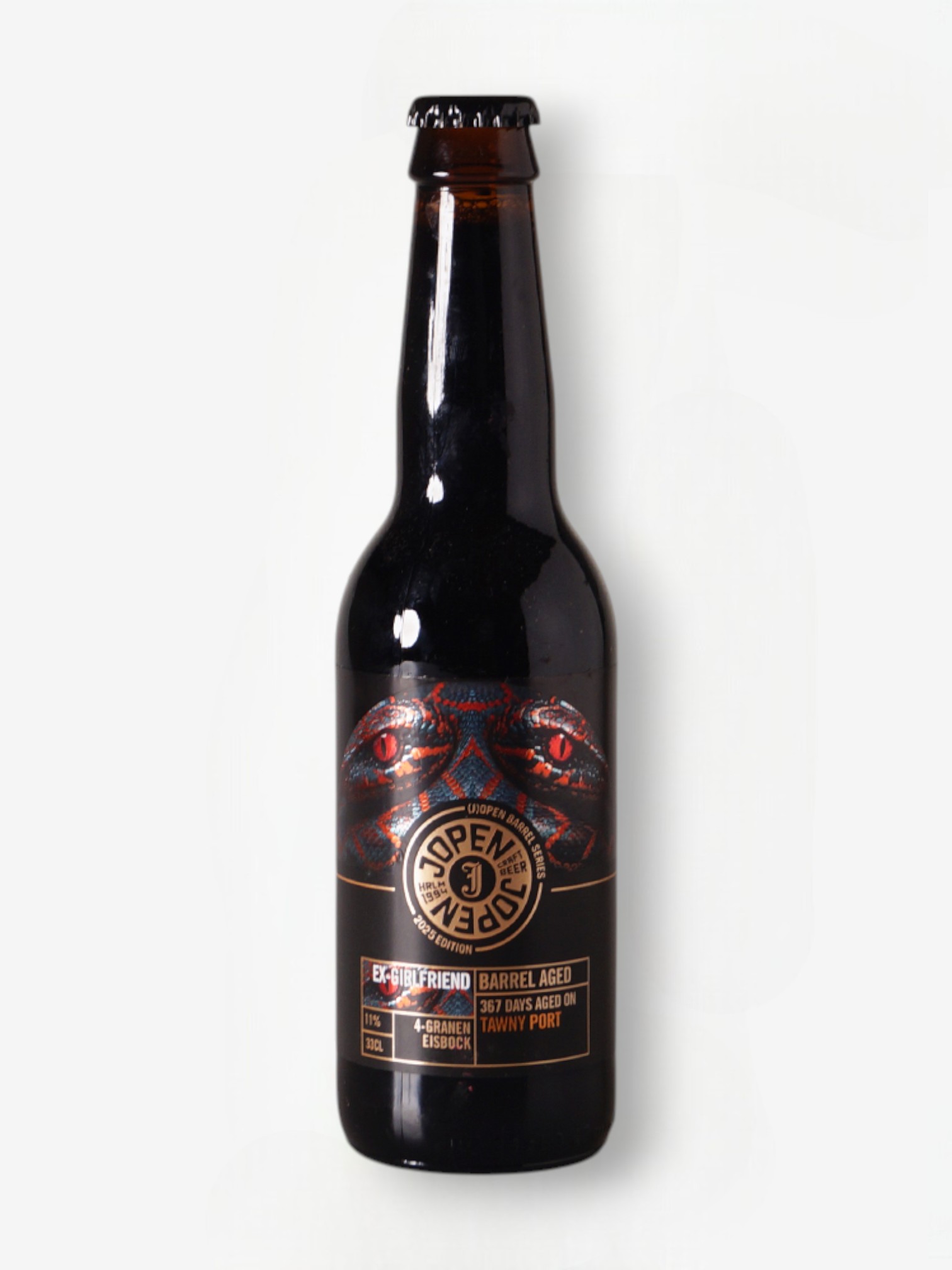 Jopen Ex-Girlfriend Eisbock Port 33CL is een bijzondere eisbock van de Nederlandse brouwerij Jopen, geconcentreerd tot een krachtig en smaakvol bier. Dit bier is gerijpt op portvaten, waardoor het een diepe, fruitige en zoete dimensie krijgt naast de klassieke volle moutsmaken van een eisbock.