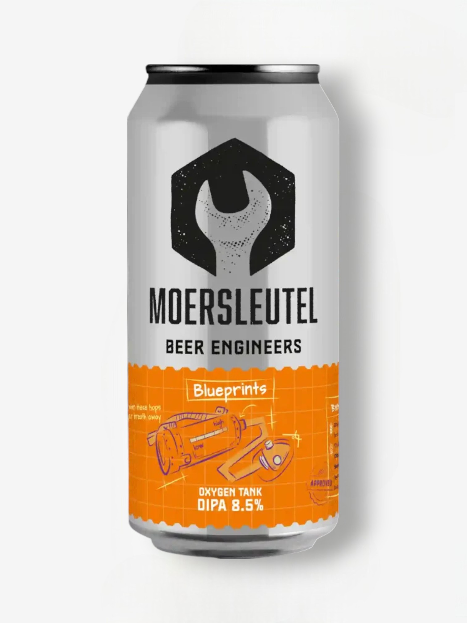 Moersleutel Oxygen Tank 44CL is een moderne en uitgesproken Double IPA die laat zien waar de Nederlandse craft brouwerij in uitblinkt: technisch vakmanschap en maximale smaakintensiteit. Dit bier is gebouwd op een stevige moutbasis met maar liefst 30% rogge, wat zorgt voor extra kruidigheid, body en een licht romige rondheid.